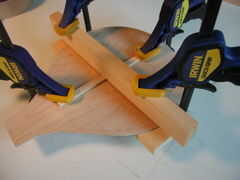 Pegué las dos mitades de la parte posterior con pegamento de madera usando el aparejo en la foto. Una vez seco el pegamento, he planeado al principio y que su espesor final y cortar la forma superior con mucha proyección.