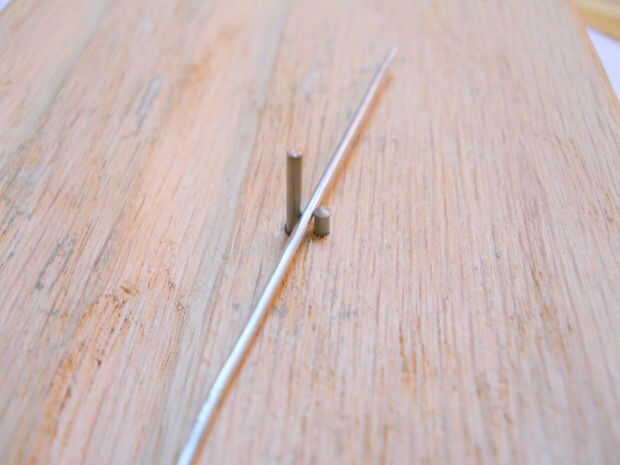 -Lugar el clip entre los dos taladro caña de la plantilla de doblez hecho en el paso anterior.