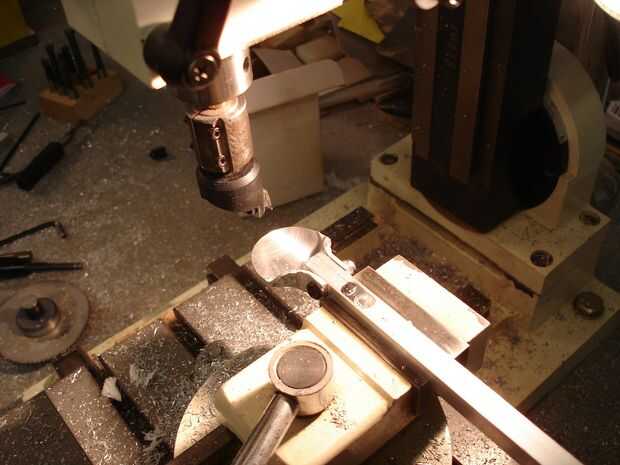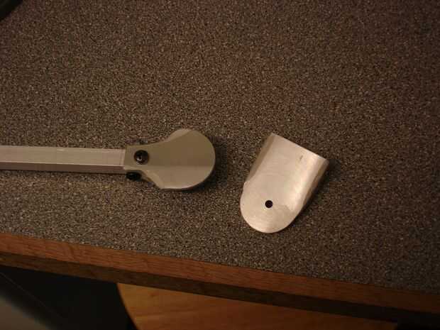 Cada uno de los dos brazos restantes necesita una placa para montar los motores, estos son lo mismo que la dirección placa de aleación de 3mm golpeada en forma con un martillo, dentro y fuera de las orejas mecanizadas en el molino como antes para asegurar un ajuste perfecto. Se perforan las orejas y la placa atornillada al extremo del brazo con un tornillo que va en todo y otro vertical, tuercas nyloc de ambos.
