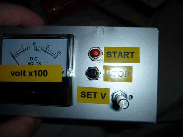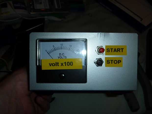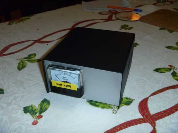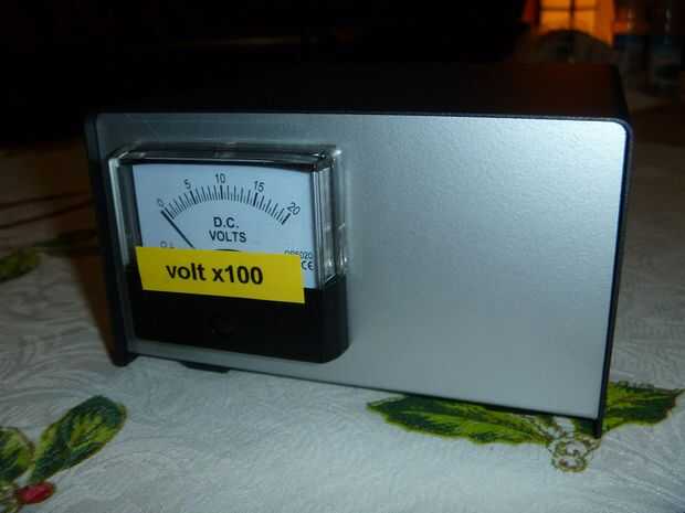 -Instale el divisor de tensión de 250K (-/ \ / \ / 240k \ / \ / \---/ \ / \ / \ 10k / \ / \ / \---) que ampliará la gama de salida de 0-500vdc a 0-20vdc para el medidor de panel.
