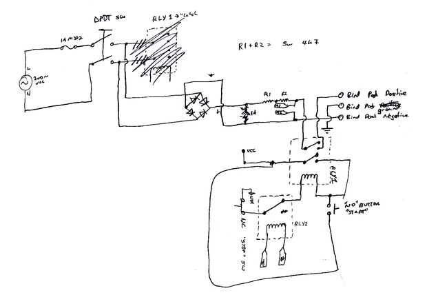 Básicamente su funcionamiento es utiliza los dos relés como un pestillo, SW1 NO "Empezar" puentes sobre ningún contacto y hace que el relé de cierre. Para que un dispositivo remoto cortar el circuito, SW2 NC "Stop" se rompe el circuito provocando al cierre RLY2 permite para liberar.
