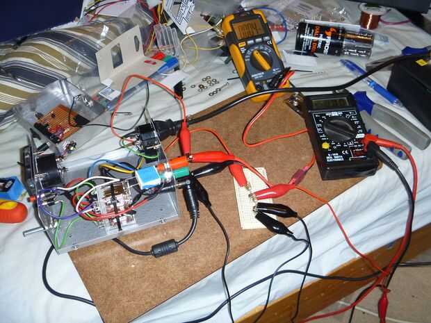 Originalmente se suponía tener apagado automático pero porque omití un condensador de la salida del puente rectificador había demasiada onda corriente en el circuito. En cambio había incorporado un enchufe mono de 3.5mm para conectar a un monitor externo para cuando finalmente obtener para añadir la salida del condensador de filtrado.