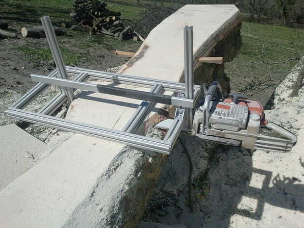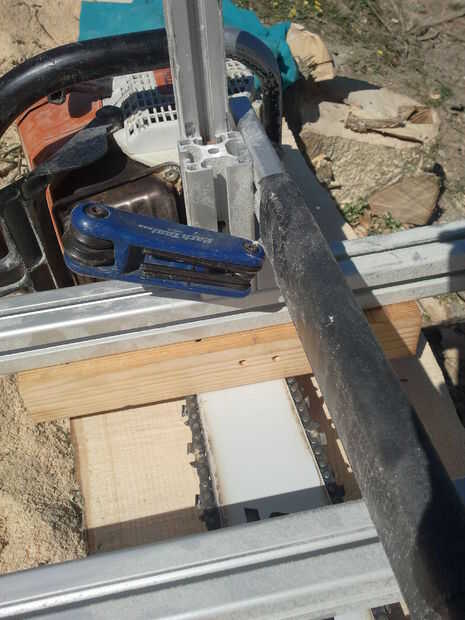 Utilizando a la guía parece tener un beneficio adicional que reduce las vibraciones en la manija de molinos. Esto es porque el molino se ajusta más al (verticales), que parece que significa que las vibraciones más tienen que viajar desde la barra de guía a la estructura del molino. En la práctica esto hace una gran diferencia en los niveles de vibración - corte una junta sin la escalera, decir 1" por ejemplo, significa la estructura del molino es de sólo 1" de la cadena y las vibraciones son significativas. Utilización de la escalera el molino es aproximadamente 4 1/2" de la fuente de vibración y las vibraciones se reducen mucho = confort y menos desgaste áspero en conjunto del molino.