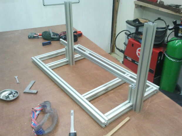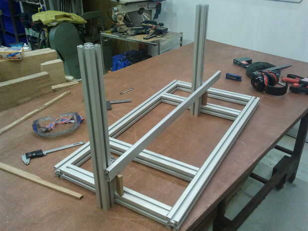 Las verticales (C), debe alinear exactamente con las verticales pequeñas (D), para que el cuerpo del molino se mantiene perpendicular a la barra de guía. Como ves en las fotos que usar pequeños trozos de madera dura, cortada al tamaño exacto de la ranura para ello.
