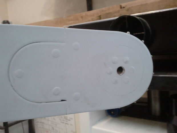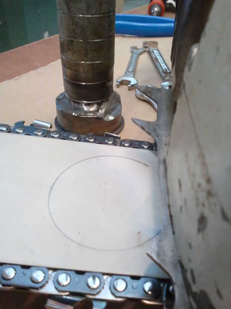 Comienza por pasar un tiempo trabajando la mejor posición de los pernos. Si tienes una Stihl Rollomatic e - los con un piñón en la nariz, quiere ir a la derecha en el centro (ver foto). Para trabajar la posición del orificio de entrada, dibujar alrededor de un pedazo del perfil de aluminio. Hacen como cerca del cabezal de la motosierra como usted puede conseguirlo (esto hace que el molino de CS más seguras con menos expuesta cadena y más controlabilidad). Recuerde dejar espacio extra por lo que se pueden cambiar fácilmente las cadenas. Important(!) de la broca, asegúrese de dejar espacio ajustar la barra de guía para que pueda eliminar la tensión y quitar una nueva cadena - nuevo que empezar un poco más cortos.