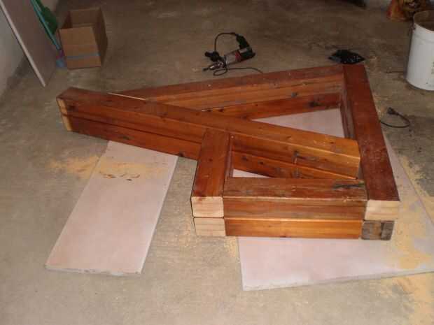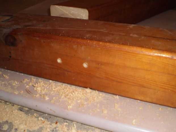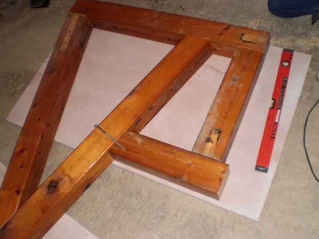 Lo primero que tenía que hacer era cortar las vigas de madera en los ángulos y dimensiones exactas. Esto fue alcanzado usando una máquina de corte de madera, pero desafortunadamente no tomar fotos de eso. Es muy importante que este proceso es preciso porque podría efectuar la estabilidad de la rejilla. Lo siguiente fue perforar unos agujeros donde se colocaría los pernos.