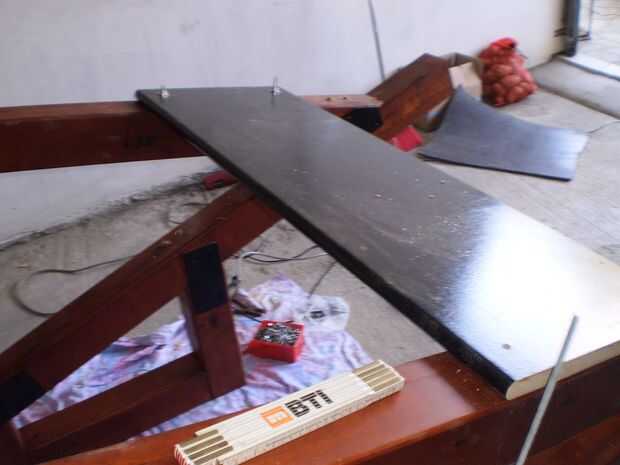 Tuve que juntar las dos piezas juntas a una distancia accesible mediante tableros de madera. De esta manera la construcción sería estable y seguro para el uso.