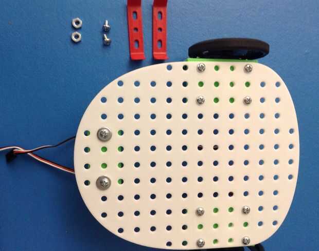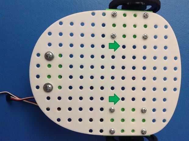 1. Encontrar las dos filas de agujeros entre los tornillos de conexión de los soportes del Servo a la placa base.