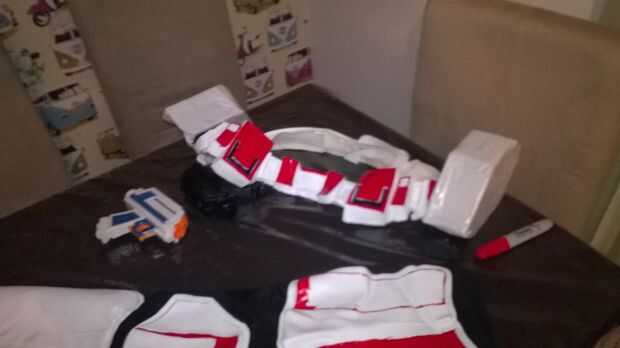 para el resto de la armadura, usé cinta aislante roja a color en mi armadura.