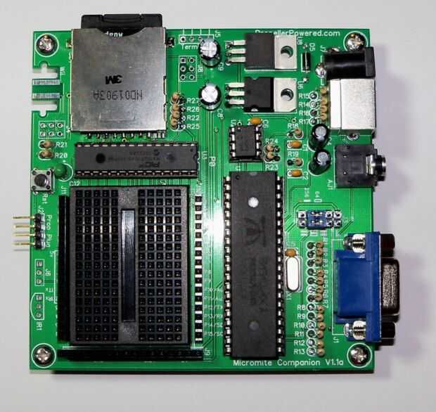 Es la combinación de dos sistemas de código abierto, el software Micromite, una creación de PIC32 por Geoff Graham y el propulsor de la paralaje, un chip por Chip Gracey de recientemente "abierto de origen". Combinando esta dos chips muy singular podemos crear un potente microprocesador que contiene un intérprete de BASIC actualizado capaz de ejecutar programas de "vieja escuela", así como nuevos comandos para el control de sensores, servos, módulos del LCD y mucho más. Te para crear juegos de sprites y azulejos para controlar objetos en pantalla, o mueva la acción en el mundo real con aparatos y robots servo controlado.