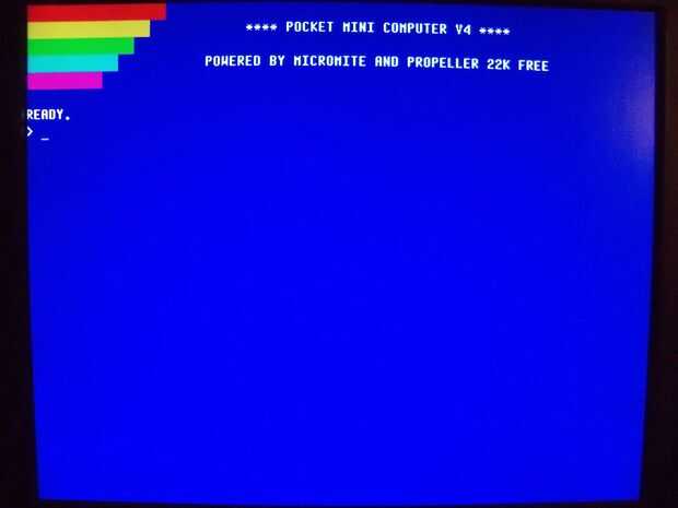 Encienda su Micromite compañero Minicomputadora y usted debería ver una pantalla azul brillante con: