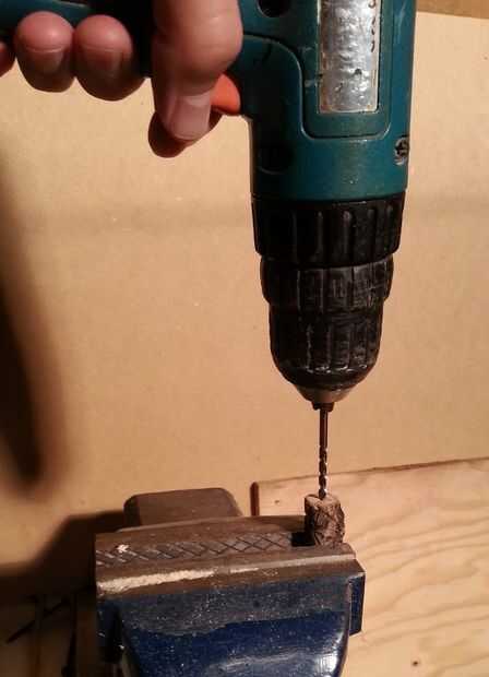 Cortar la rama de Monte áspero cuadrado entonces en un tornillo de banco para que usted puede perforar la superficie de la rama. Desglosar aproximadamente 0,75".