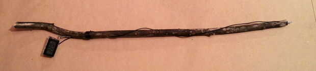 Envuelva el cable del termómetro alrededor de la rama un par de veces sobre la longitud de la rama y luego envolver cualquier exceso y un nudo suave en la parte superior e inserte la pantalla. Figura que el cuantas vueltas sueltas cerca de la parte inferior hacen menos probable que tire el cable como la rama se inserta en una pila de compost. Ángulos y esas cosas.