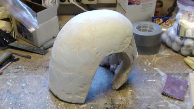 Esto es cuando empecé a construir las zonas empotradas en la arcilla debido a los errores de mi parte. Apoxie esculpir es realmente bueno para la construcción, considerando que el bondo es realmente bueno para trabajo de alisado y detalle. Dicho esto, tuve que usar un montón de ambos para obtener la escultura a parece en nada al casco real. Una vez que hacer una pasada de apoxie esculpir, arena, vea donde necesita más y hacerlo de nuevo, tal vez 2 o 3 veces. En algunas de las fotos puedes ver que pongo arcilla y apoxie esculpir en las partes afeitó apagado antes. Para mis propósitos, no era realmente necesario trabajar muy duro en la última sección de la parte inferior, ya se cortarán hacia fuera en el producto final de todos modos.
