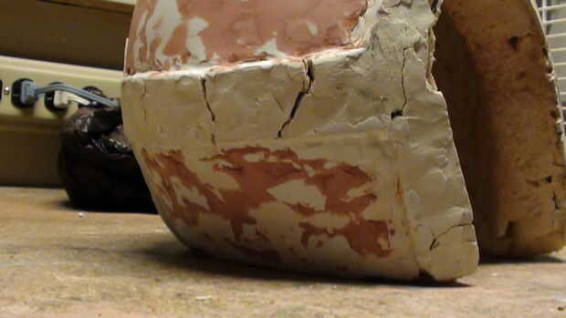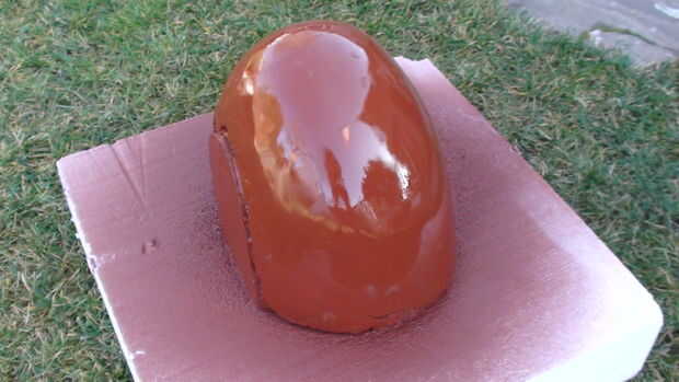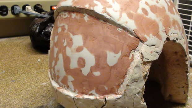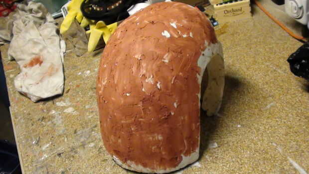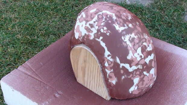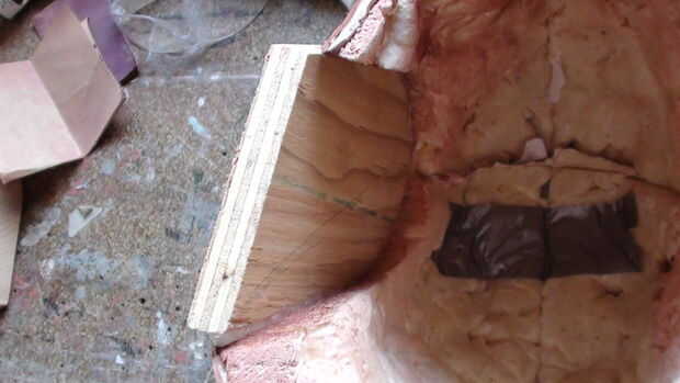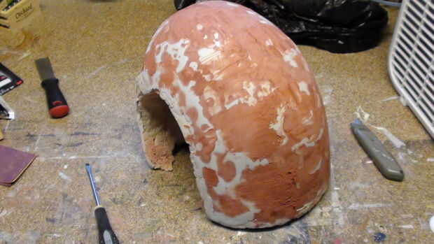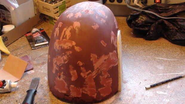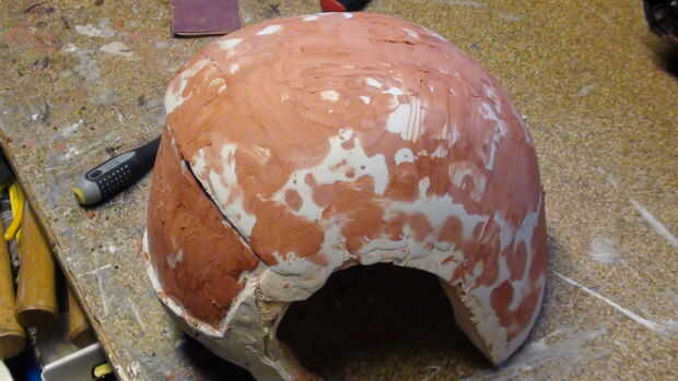 This is probably the most time consuming part of making the master sculpt. Se trata de un montón de capas y pasa con bondo y una espátula e incontables horas de tiempo. Hacer una capa áspera arena abajo, hacer otra capa y otra y otra... usted consigue el punto. Y aunque el tiempo de curado bondo es etiquetado como 30 minutos o menos, lo daría por lo menos y la hora, quizás dos si estás haciendo gruesos abrigos, como la parte inferior todavía pueden estar húmeda cuando vas a la arena. Esto no es un gran problema al llegar a las capas más finas. Después de tres o cuatro capas, cuando las cosas están empezando a parecer bastante suave, cubrir todo en una imprimación sandable realmente acentuar las imperfecciones. Hacer unas cuantas más capas de bondo sobre estos puntos y después de 6-8 capas, debe ser muy suave. Oh y las dos últimas fotos son cuando la imprimación está mojada, no seco. He trazado una plantilla desde el orificio de las orejas y recortar la forma de madera. He insertado usando un montón de pegamento caliente. Antes de hacerlo sin embargo, asegúrese de sea muy precisas a su plantilla o hacer otra plantilla de madera de la pieza. Usted necesitará para la base de las orejas.