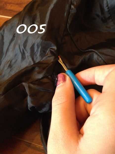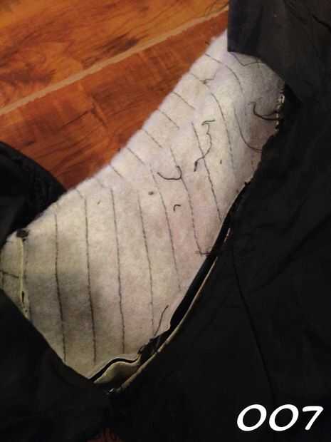Cuando cierre con seguridad es Ripeado, vuelta adentro hacia fuera y rip la costura posterior de la manga para obtener un pedazo plano abierto de la tela con la forma de la manga original (como la imagen 008, arriba).