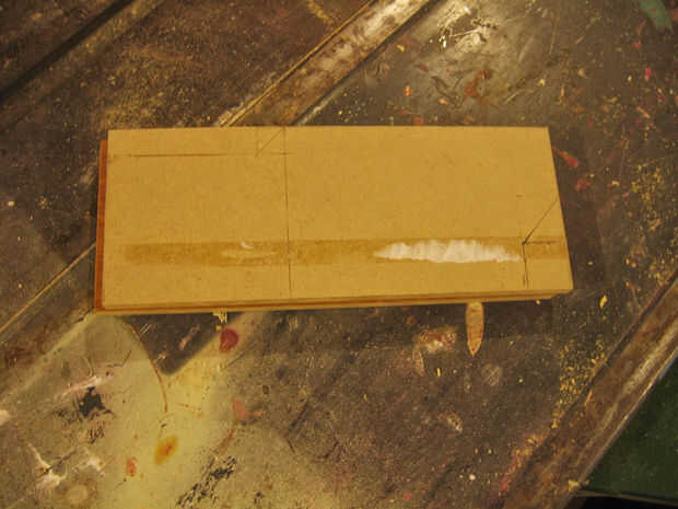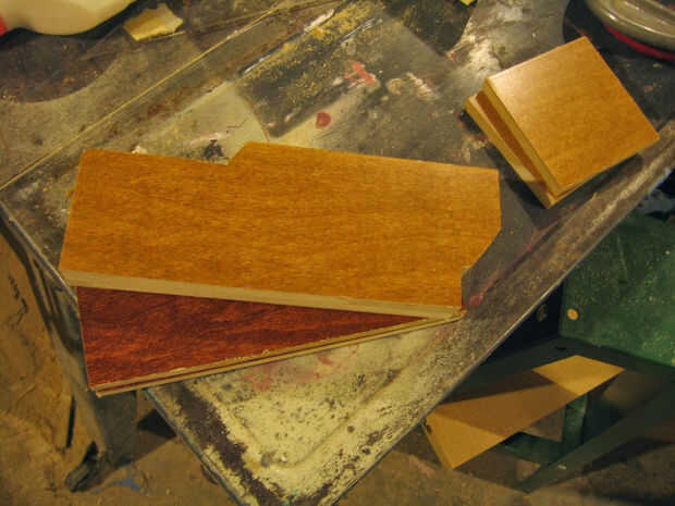 Para la batería pegan trozos de 2 x 4 y luego corte y había lijado hacia abajo. Debo haber usé MDF de 1/4" para crear una shell y reducir peso. Más tarde tenía que ahuecar mi batería sólida para la luz, cambio y futuro cableado funcionaría en el cartucho.