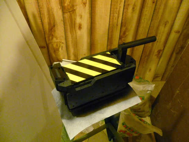 Antes de colocar la placa de aluminio para salvar de la necesidad de cinta pintura de la trampa. Es mucho más fácil pintar componentes separados que cuando es todos junto. Pegamento se aplicó a los agujeros y el tornillo insertado. La mayoría de los tornillos son de 1/4" de largo. El tornillo de la manija es 2.5" para reforzar el mango.