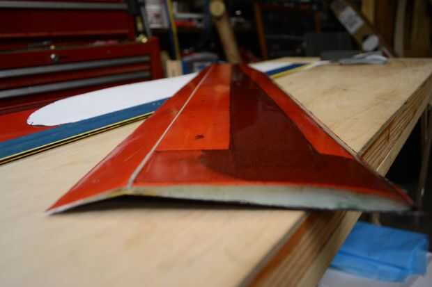 Para cortar la línea de bisagra, cuidadosamente línea de un borde recto en la parte superior del ala y rodaja hasta la banda de kevlar en la superficie inferior del ala. Luego, trabajar la bisagra hasta el alerón se mueve libremente. A veces, dependiendo del horario del layup, anotando la superficie inferior del ala puede ser necesario.