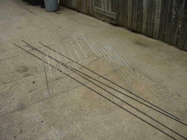 Lo primero que hice fue conseguir la jaula de un acondicionador de aire de desecho, luego encontré unas cañas en el garaje y cortar las piezas a montar.