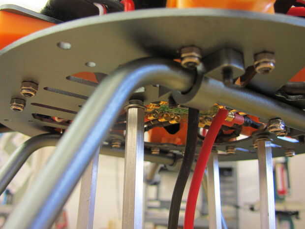 - También tenía 4 tuercas de larga extensión que utilizaba para sujetar la placa de la batería. Con toda honestidad, realmente son demasiados, que me gustaría ir con la mitad de la altura de lo que se muestra (1 pulgada a 1 1/4 pulgadas en lugar de 2"). También me habría salvado de tener que hacer una curva de Z en los pasos que vienen arriba.