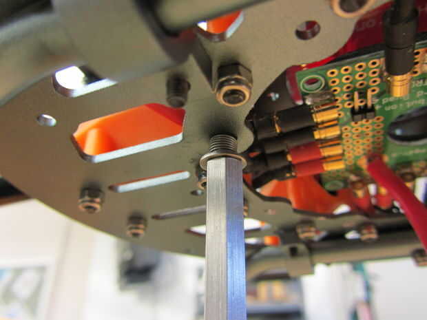 - Para aquellos preguntándose qué tamaños de tuercas y tornillos para... Estoy seguro que no exactamente. Pero el tamaño es métrica y es del mismo tamaño que cualquiera de los tornillos de cabeza de cilindro que viene con el hexacopter. También, obtener las contratuercas de nylon en lugar de los normales.
