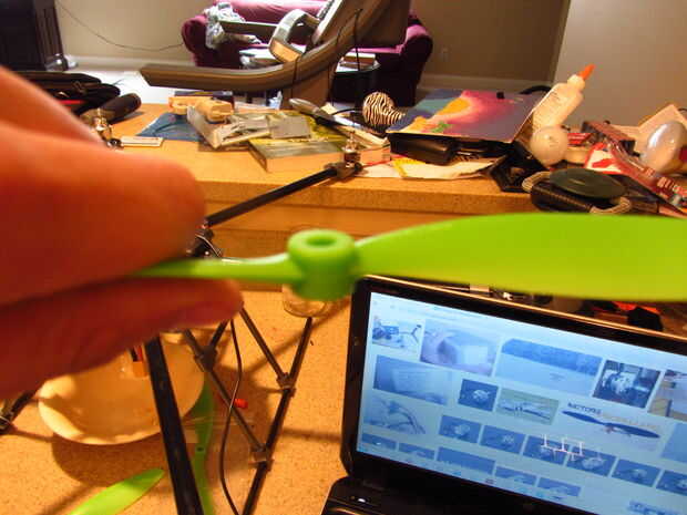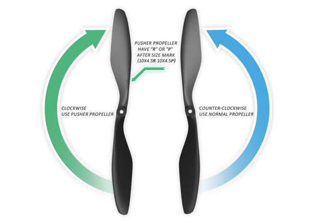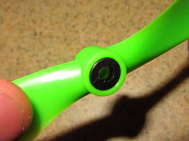 • Usted puede encontrar los números como texto muy pequeño en la parte superior de la hélice. Una buena manera de saber si sus hélices son boca abajo es comprobar si hay texto en la parte superior de la hélice. Si no es así, entonces sus hélices estén boca abajo.