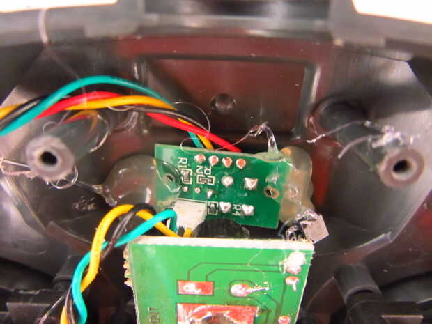 - Después de soldar los pines en Asegúrese de caliente pegamento sobre las conexiones para proteger de un cortocircuito.