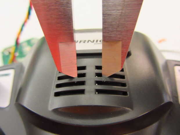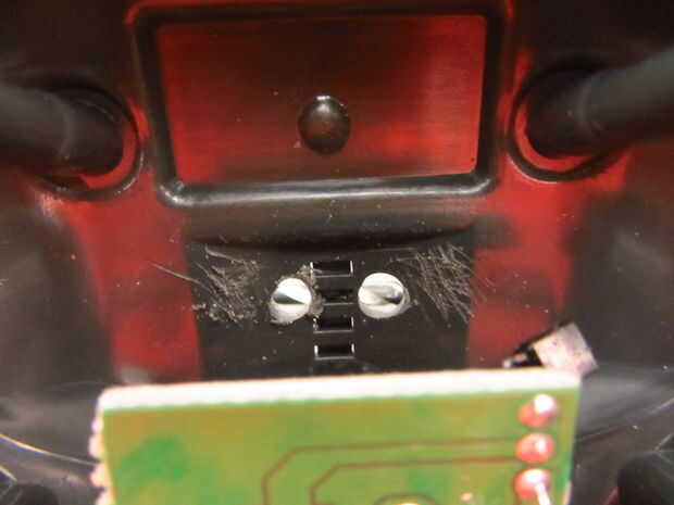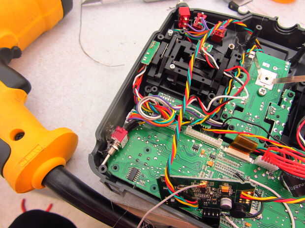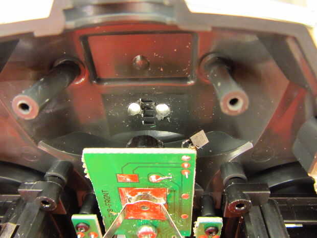 - Pegamento caliente este interruptor en el interior más baja izquierda del transmisor. He encontrado esto para ser el mejor lugar para mantenerlo fuera del camino.