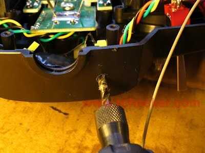 - Uso un 1/8 de pulgada (estoy no sabe exactamente, así que cheque usted mismo antes de usar un 1/8) de broca para perforar dos agujeros en la parte delantera donde marcaste los centros que en el transmisor de 9 x.