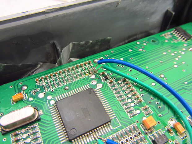 - Vas a tener que cortar 4 cables (2 en la parte frontal, 2 en la parte posterior) y dos resistencias de ohm de 2,2 K a la Junta de la soldadura.