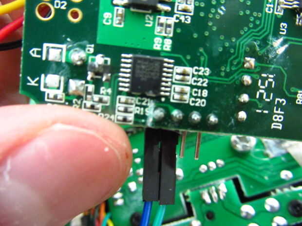 - Utilizar hilos muy finos al hacer este paso. Utilicé cable de servo sobrantes desde el módulo GPS, cortar los cables por la mitad luego había les había despojado.