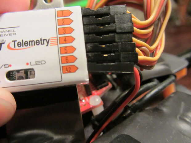 • Una vez finalizado ese paso, conecte el extremo del conector del servo al puerto de su receptor Frsky A2 .