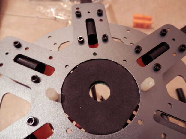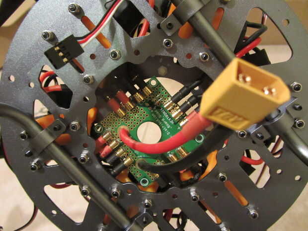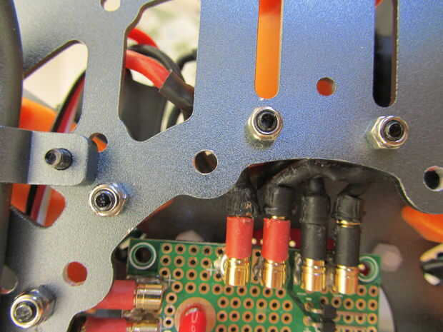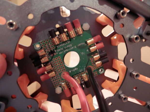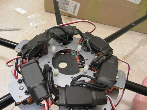 - También, he utilizado un Patrón de tejido cuando monte ESC de, lo que significa que cada ESC fue espaciado sobre una ar a su motor correspondiente. Aconsejaría para mover la etiqueta número del motor a su salida correspondiente después de que se les han soldado juntos o el siguiente paso será muy confuso.