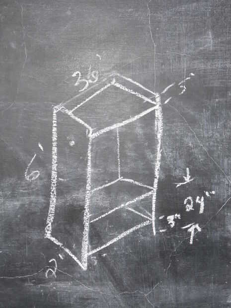 Cinta de medida, cuadro de tiza, Plaza, lápices ect.