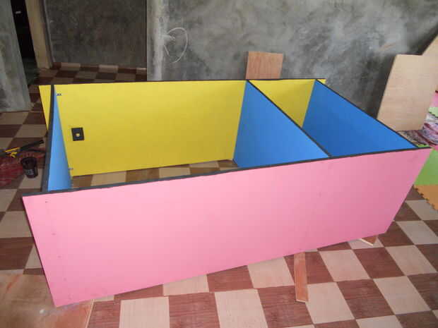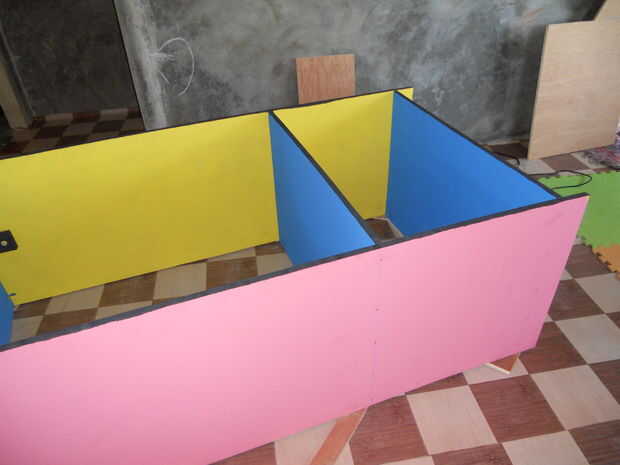 De borde de la "parte delantera" de los paneles en pintura negra. Sobre todo para ocultar las enormes cantidades de madera masilla que tuve que usar para llenar los huecos en esta "prima Marina madera contrachapada del grado."