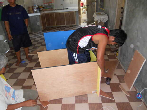 Visto en las fotos son el "April Brothers y padre. Sólo quería a alguien para mantener las partes darn mientras hice lo que me gusta, pero realmente tienen en él. Nunca que se diga que acaparó todo el trabajo de carpintería.