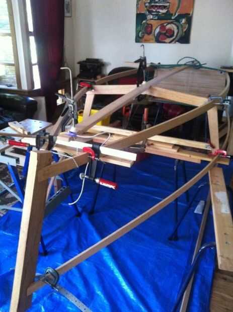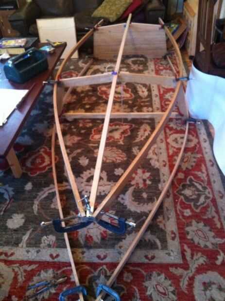 Los lomos y inwales fueron cortadas de las mismas piezas de madera para asegurar que ambas mitades doblaron con la presión misma / uniforme.