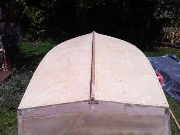 Cuando el casco estaba completo me puso en la cubierta sobre la parte delantera y forma la parte superior del tallo... Yo también y puso algunos quad alrededor la combinación interna de la claraboya para darle algo de apoyo, algunos talones en cada esquina superior de la popa - poner tornillos por la borda, capas y inwale.