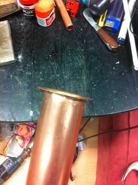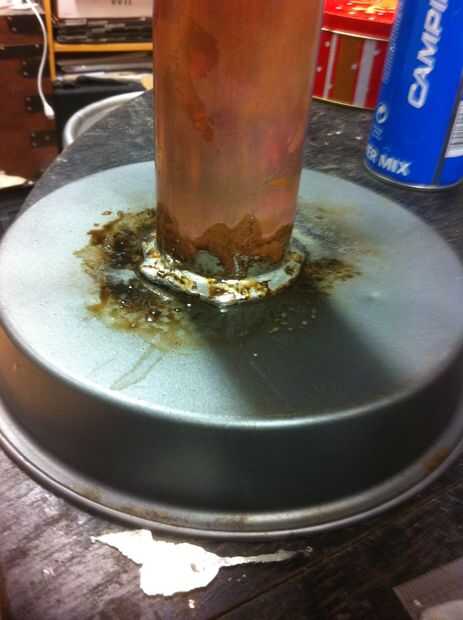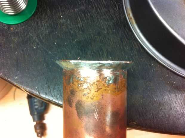 para hacer esto usted necesita para construir un nivel de soldadura, asegúrese de que usted flujo la zona antes de que comience, no mantenga el soplete directamente en la soldadura será sólo piscina para arriba y cae usted quieren calentar hasta que la soldadura derrita luego tire la antorcha lejos y espera un segundo y hacerlo nuevo con nueva soldadura. Use un tiempo la torta o bandeja para hornear colocar la columna sobre para proteger la superficie de trabajo.