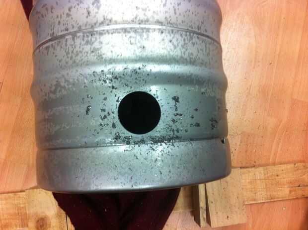 antes de perforar cualquier cosa que necesite a la medida y marque donde desea hacer el agujero, debe ser tan bajo como sea posible en el barril y entre las 2 manijas en el barril para no golpearlo cuando mover.