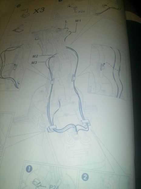 Pelar 5 de P24 y adjuntar 1 justo detrás de la pinza, 2 junto a E1 y 2 en la base para fijar los cables. (aquí hay una foto)