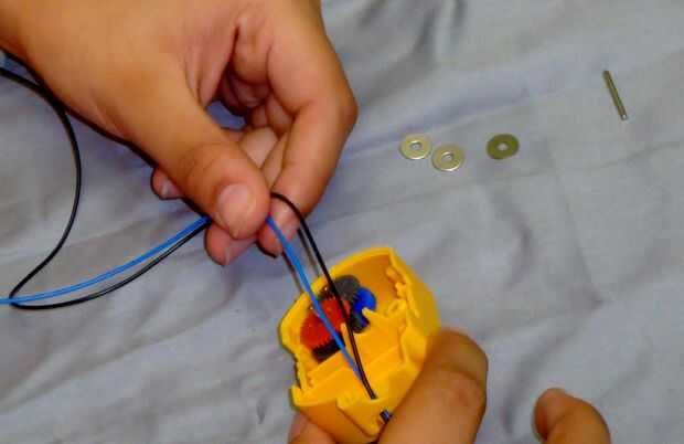 Tomar P1 y colocar tanto los alambres a través de la apertura de A2. La siguiente cosa a hacer es tomar la A1 y tornillo en la parte superior A2 con tres tornillos de P13.