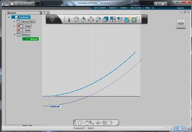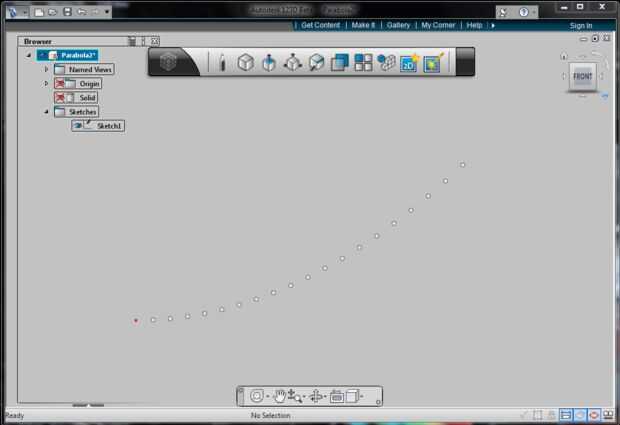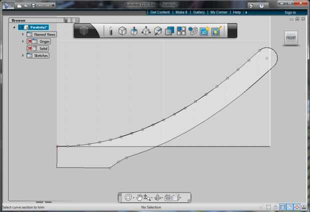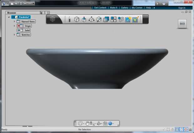 123D, había creado un bosquejo y entró las coordenadas de mis puntos a la vez. Entonces había conectado con una tira. Esta es la curva que define la superficie interior del plato. Agregar algunas líneas más para completar la sección transversal del plato, luego giraba en 360 grados sobre la línea central.