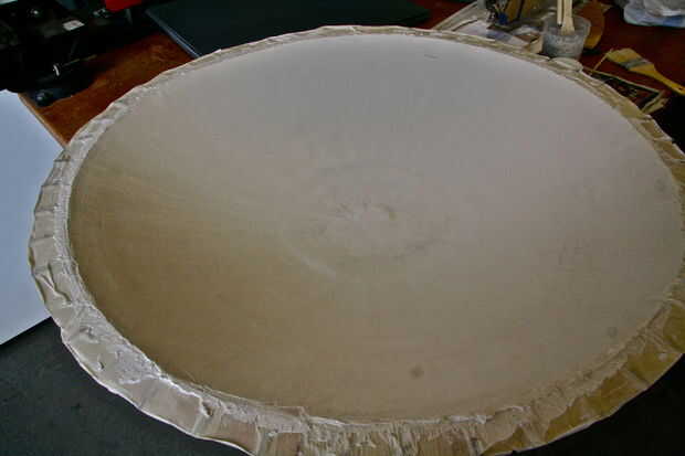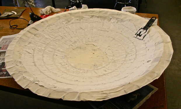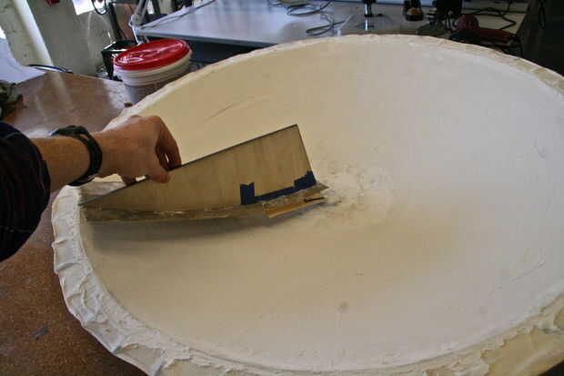 Una vez que el compuesto de juntas la superficie curvada que estaba buscando, sella la superficie con tres capas de pintura acrílica. Considera epoxi y poliuretano, pero decidido en el acrílico puesto que era menos tóxico y tuvo el menor impacto ambiental.