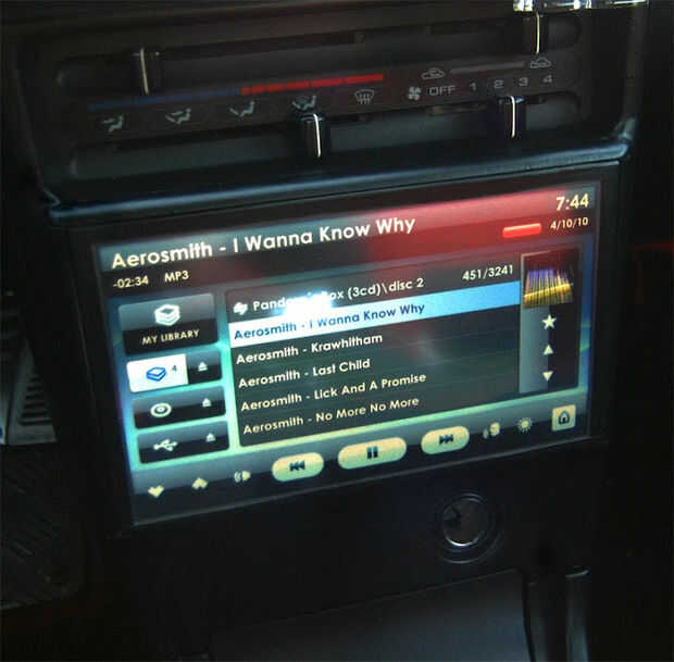 Mi v1.0 fue un EEEpc convertido (laptop) que desconecta la pantalla, había instalado una superposición de pantalla táctil y había extendido algunos interruptores y botones en la computadora portátil sí mismo. A continuación, hackeado en la consola principal de mi coche y era bueno para ir.