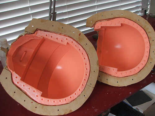 Después de la chaqueta de curaciones, eliminar al maestro de los materiales del molde y volver a montar todo en un molde de casco hueco vacío. (foto 3)