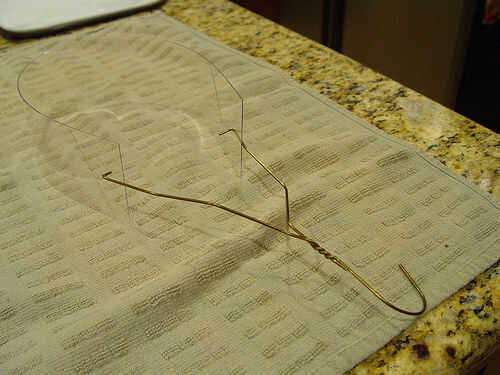 Poner el visor en el baño de tinte y déjelo remojar durante 5 minutos. Transcurrido este tiempo, quitar la visera y sumérjalo en agua fría para "sellar" el tinte en el plástico. Repetir este proceso 5 - 6 veces, o tantas veces como sea necesario para lograr el nivel deseado de tinte. (foto 7)