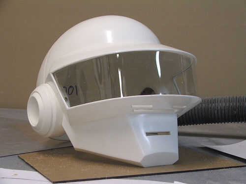 Después ya tienes tu plantilla terminado, recorte la visera de plástico PET. Asegúrese de dejar la película protectora sobre el plástico hasta que esté listo lo del tinte. Compruebe el ajuste en el casco recortado. (foto 3)