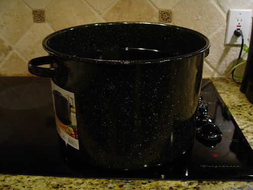 Mientras esté tomando en este paso, es una muy buena idea colocar bolsas de plástico y papel de cocina sobre la encimera cerca de la estufa. RIT tinte es muy agresivo y descolorará casi todo lo que toca, incluyendo encimeras y armarios de madera! Paños son una muy buena idea.